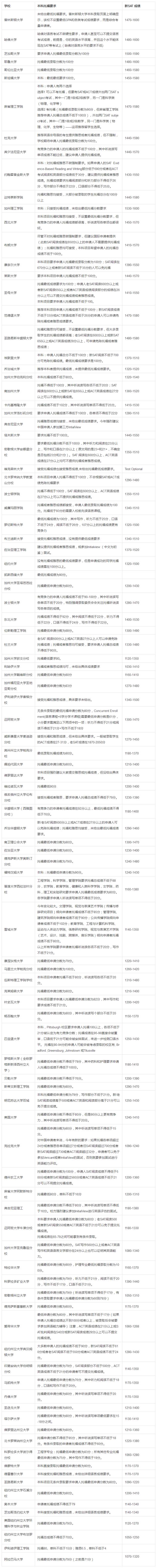 在2018年秋季录取要求中,部分高校调整了语言成绩要求,表格呈现了美国前100大学的2018年本科申请的托福成绩要求。